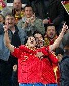España, 2: Casillas; Ángel, Javi Navarro, Marchena, Capdevila; Albelda, Xavi (Xabi Alonso, m.60), Iniesta, Silva; Villa (Angulo, m.75) y Morientes (Fernando Torres, m.63)