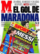 Los medios de comunicación se han volcado con el gol del argentino. Los diarios han aprovechado para dedicarle gran parte de sus portadas. Marca titula "El gol de Maradona" y refleja de qué manera se ha repetido la historia: 60 metros recorridos (como el Pelusa), en 12 segundos (contra 10), 13 toques (por 12), 4 rivales y el portero regateados (Maradona, 5 y el portero). Además apunta la dedicación del jugador: "Se lo dedico a Diego". Por su parte, y AS apenas le da la parte superior de su portada con un fotomontaje de todo el recorrido del jugador y dedica sus primeras páginas al partido, aunque centrado en el tanto que su director, Alfredo Relaño califica de "obra de arte".