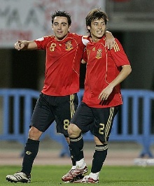 España, 1: Reina; Sergio Ramos, Pablo, Albiol, Pernía; Senna; Iniesta, Xavi (Villa, m.66), Cesc (Joaquín, m.46), Silva; y Güiza (Tamudo, m.57)