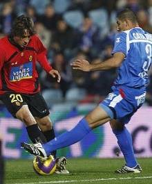 Pero el dominio local no obtuvo sus frutos en los primeros 45 minutos. Ni siquiera llegó a disparar entre los tres palos. El delantero Juan Albín fue el que más se acercó a ellos. Hubo que esperar al minuto 42 para ver una clara ocasión de gol. El uruguayo se sacó de la chistera un zurdazo desde fuera del área que rozó el palo izquierdo de la meta defendida por Germán Lux. Antes, Gavilán y Granero entraron varias veces como puñales por sus respectivas bandas, pero sus centros nunca encontraron un rematador que inaugurara el luminoso. El dominio azulón no obtuvo recompensa en el primer acto. Del Mallorca no hubo ninguna noticia.