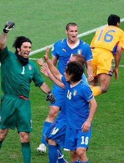 Italia, 1: Buffon; Zambrotta, Panucci, Chiellini, Grosso; Pirlo, De Rossi, Camoranesi (Ambrosini, m.85); Perrotta (Cassano, m.57), Del Piero (Quagliarella, m.76) y Toni