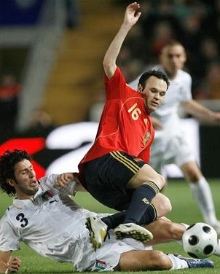 España: Casillas; Sergio Ramos, Puyol, Marchena, Capdevila; Senna; Iniesta, Xavi, Silva; Villa y Torres