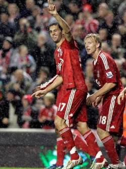 L D (EFE) Dos goles del irlandés Robbie Keane, en los minutos 34 y 43, han permitido al Liverpool dejar el encuentro visto para sentencia antes del descanso. Tras tener la victoria encarrilada, Keane ha dejado a un cuarto de hora del final su puesto a Fernando Torres, que se lesionó a mediados de octubre jugando con la selección española. Curiosamente, ha sido otro español, el defensa Álvaro Arbeloa, quien cerraría la cuenta goleadora, casi en el último suspiro del partido.
