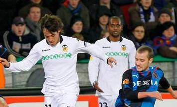 Un error del guardameta Miguel Ángel Moyá en el único gol del partido y otro de David Silva en la jugada que propició su expulsión ponen cuesta arriba el pase del Valencia a la siguiente ronda de la Liga Europa, tras la derrota sufrida ante el Brujas belga por 1-0.