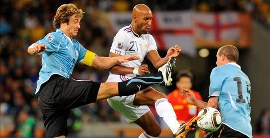 Sin embargo, los franceses, con Abou Diaby, como abanderado, se apropiaron del balón en el centro del terreno y buscaron por las bandas abrir la defensa uruguaya, de cinco futbolistas, que sin embargo respondió bien pese a algún error del capitán Diego Lugano en un despeje que complicó a sus compañeros. El "cerebro" del equipo celeste, Ignacio González, no estuvo claro con el balón, por momentos apareció empecinado, perdió varias oportunidades de contragolpe y fue sustituido en el complemento.