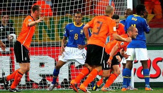 Treinta y seis años después, desde Alemania'74, la selección holandesa ha vuelto a ganar a Brasil para alcanzar las semifinales del Mundial de Sudáfrica 2010. La magia de la pareja formada por Wesley Sneijder y Arjen Robben, así como la desgracia de Felipe Melo, que volvió a jugar y puso un impecable pase para el gol de Robinho, pero anotó en meta propia para irse expulsado a los 72 minutos, resumen el vaivén de un partido por momentos bronco y de alto voltaje.