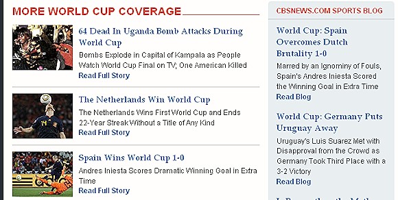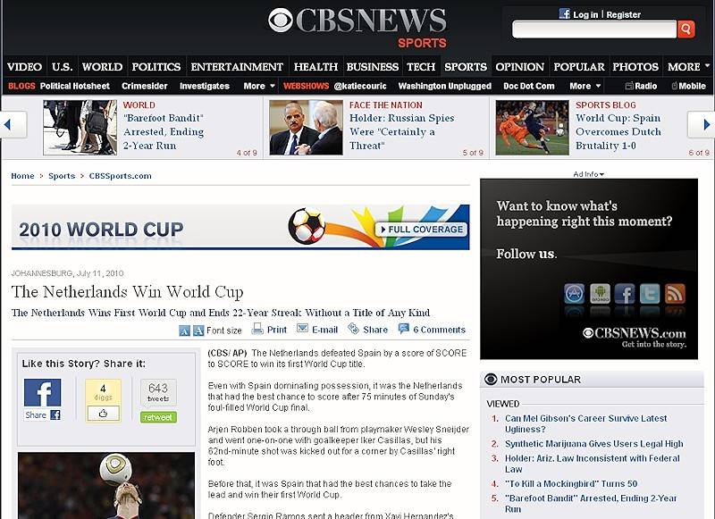 La página web de CBSNews lo hizo este domingo respecto al partido de la final del Mundial y hasta ahí todo lo normal, lo excepcional es que se hayan publicado las dos versiones y que más de quince horas después del partido ambas se puedan encontrar en la portada del especial sobre el mundial.