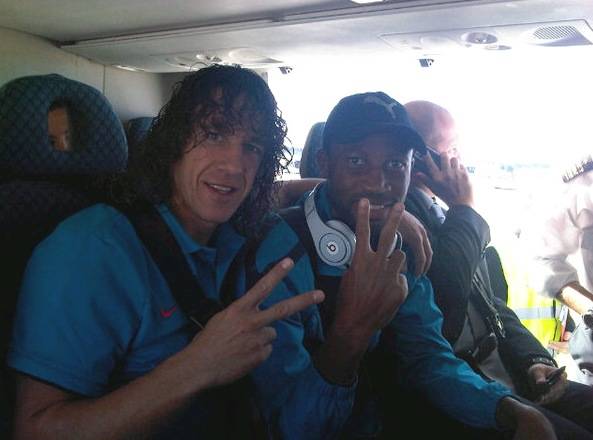 En uno de ellos viajaban juntos Carles Puyol y el maliense Seydou Keita. Así se ha podido comprobar en la fotografía que el defensa internacional español ha colgado en internet a través de su cuenta en Twitter.
