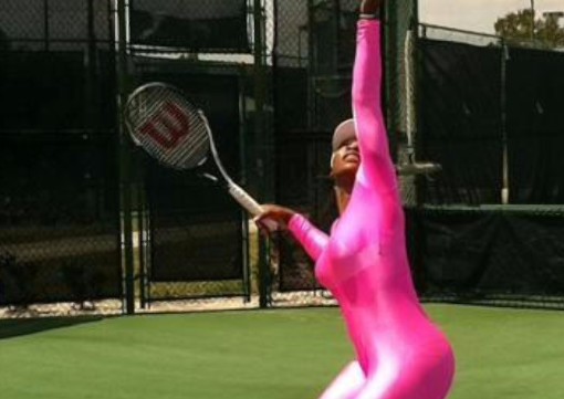 Alejada desde hace meses de las canchas de tenis, Serena Williams ha subido una foto en su Twitter donde se la puede ver entrenarse con un traje de buzo color fucsia que se asemeja a la Pantera Rosa. No debe ser muy cómodo el atuendo para entrenar, pero por lo menos ha vuelto a salir en las páginas deportivas.