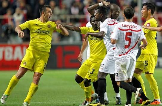 El lanzamiento de balones al terreno de juego del estadio Sánchez Pizjuán deslució el gran partido que Sevilla y Villarreal brindaron a los aficionados, con victoria por 3-2 a favor de los locales, en el último partido del domingo correspondiente a la trigésima tercera jornada de Liga.