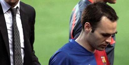 Iniesta se retiró a los diez minutos del inicio de la sesión acompañado por el fisioterapeuta Emili Ricard, con el que se había ejercitado previamente, al margen del grupo.