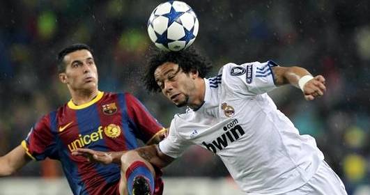 Lo cierto es que los madridistas jugaron un primer cuarto de hora bastante potable, presionando muy arriba y ahogando la salida del balón de los azulgrana. Hasta Cristiano Ronaldo, a quien se le sigue esperando en las grandes citas, sacaba la garra y trataba de echarse el equipo a la espalda. En el centro del campo mandaba Lass Diarra, titular ante las ausencias del sancionado Pepe y el lesionado Khedira, al cortar todos los balones. El Barça, mientras tanto, tocaba en horizontal y sin profundidad alguna. No era cuestión de arriesgar, claro está, con dos goles de ventaja.