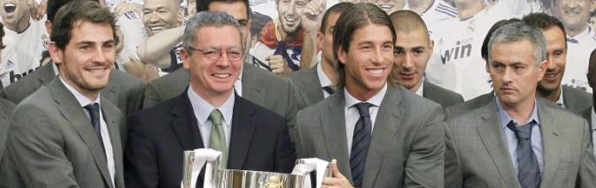 Alberto Ruiz-Gallardón ha recibido este miércoles a los campeones de Copa del Rey, donde ha elogiado a Mou, como él mismo le ha llamado, y ha indicado que "Cibeles es más vuestra que nuestra". Además, ha augurado que el año que viene el Real Madrid volverá en tres ocasiones.