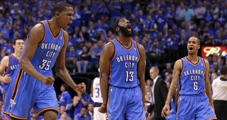 El alero Kevin Durant ha respondido una vez más a su condición de líder de los Thunder al conseguir 24 puntos, cuatro asistencias y tres rebotes. Pero ha sido el escolta reserva James Harden, el sexto jugador del equipo, el que se ha convertido en el factor sorpresa con 23 puntos –cuatro de ellos decisivos al final del tercer período–, siete rebotes y cuatro asistencias. Junto a ellos, el base Russell Westbrook ha firmado 18 puntos y cuatro asistencias.
