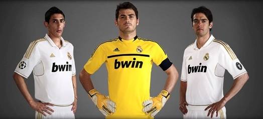 La camiseta, que tiene un diseño sobrio y elegante, incluye el color dorado para los detalles, el logotipo de la firma alemana, las tres bandas, los nombres y los números de cada jugador. Sólo el logo del patrocinador, Bwin, mantendrá su color negro. Además, la camiseta recupera el cuello clásico, al estilo polo.