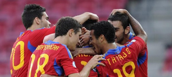España, con un juego por momentos precioso, se ha deshecho con suficiencia de Ucrania. Guiada por el talento de Thiago y el acierto goleador de Mata, autor de dos de goles, los de Milla han logrado un triunfo (0-3) que sirve para pasar como primera a semifinales y rozar la clasificación para los Juegos de Londres.