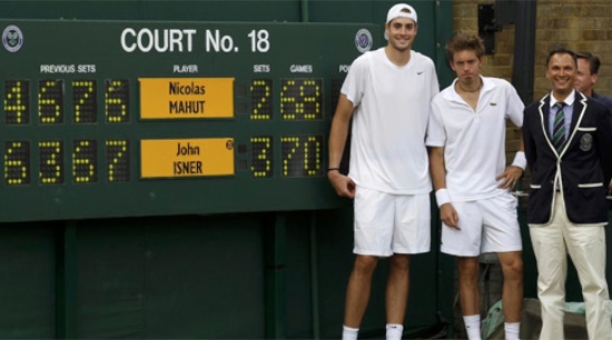 El 23 de junio de 2010, Isner y Mahut batieron un récord incluso antes de acabar su partido, el segundo día en que lo disputaban, cuando paralizaron el juego alcanzadas las diez horas.