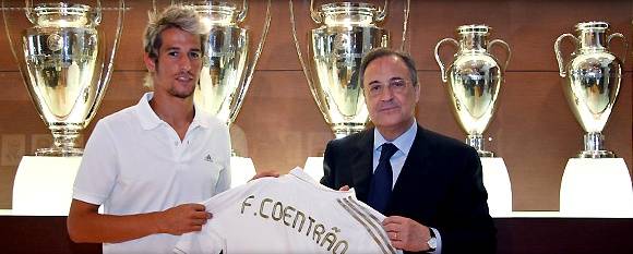 El Real Madrid ha confirmado la contratación del lateral izquierdo portugués Fabio Coentrao, procedente del Benfica, para las seis próximas temporadas. El propio club lisboeta había informado del acuerdo con el Madrid por 30 millones de euros a la Comisión del Mercado de Valores Mobiliarios de Portugal y, una vez superadas las pruebas médicas, el futbolista rubricaba su nuevo contrato en el estadio Santiago Bernabéu junto al presidente de la entidad madridista, Florentino Pérez.