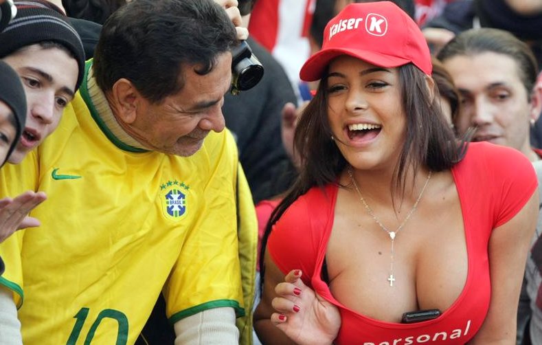 Además, varios seguidores paraguayos lucen camisetas impresas con la imagen de Riquelme, sus pechos y el teléfono móvil en el escote. La paraguaya ha prometido de nuevo si su selección triunfa en la Copa América.