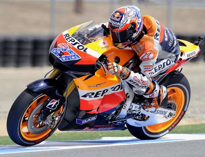 Dani Pedrosa (Honda RC 212 V), que en los primeros libres tuvo un pequeño susto al salirse de la pista y llegar a caer, no se vio perjudicado por esa circunstancia ni por la mañana ni luego en los segundos libres de la tarde, en los que tampoco tardó demasiado en colocarse con el grupo de cabeza, en el que se mantuvo hasta el final. El piloto de Castellar del Vallés acabó a poco más de una décima de segundo Lorenzo, con Stoner por detrás de él a apenas 34 milésimas de segundo.