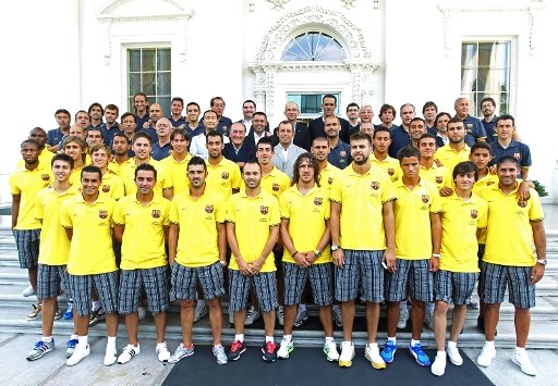 El Barcelona ha visitadio la Casa Blanca en el marco de su gira de pretemporada en Estados Unidos, que este jueves en Washington y que le enfrentará el sábado al Manchester United, en lo que será la reedición de la última final de la Liga de Campeones, ganada por el equipo culé en Wembley por 3-1 para conquistar la cuarta Copa de Europa de su historia.