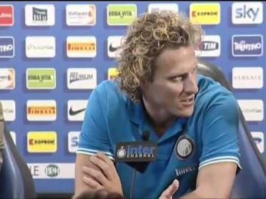 El delantero uruguayo ha comparecido en rueda de prensa con su nuevo equipo, el Inter de Milán. Forlán no ha dudado en hablar en italiano.