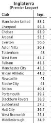 bol inglés, por ejemplo, observamos claramente cómo esas diferencias son muy inferiores. De hecho, casi son inexistentes. El Manchester United, el que más ha cobrado en esta temporada última campaña, ingresa únicamente 24 millones más que el club menos agraciado, el Blackpool, que se ha embolsado 44 millones.