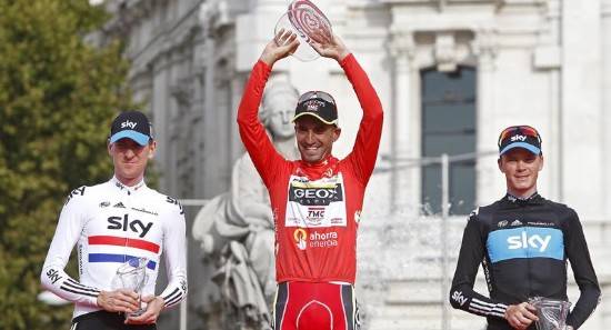 Las matemáticas le han dado por fin la razón al Bisonte de La Pesa, que se ha consagrado a los 30 años en una profesión que a punto estuvo de dejar el pasado mes de mayo por culpa de una depresión. No se fiaba de los 13 segundos que le separaban del británico Christopher Froome, pero el Sky no presentó batalla por las bonificaciones, sacó la bandera blanca y se conformó con colocar a su corredor revelación y a Bradley Wiggins en el segundo y tercer escalones del podio.