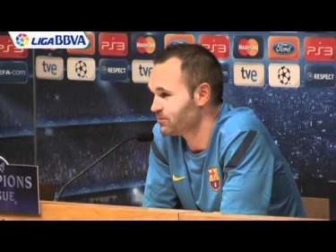Rueda de prensa de Andrés Iniesta, previa al primer partido de Champions que el Barcelona jugará este martes contra el Milan en el Camp Nou.