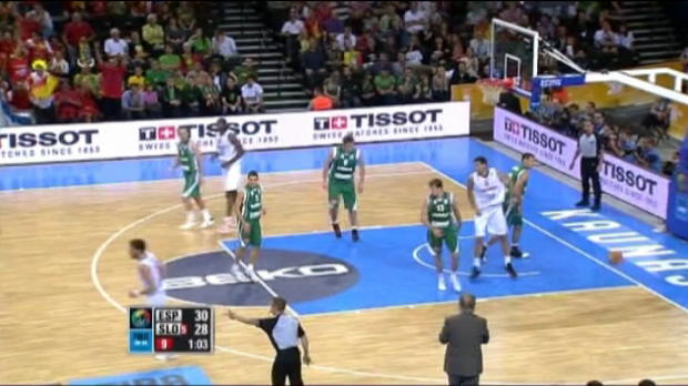 La selección española se ha convertido en la primera semifinalista del Eurobasket de Lituania 2011 al pasar por encima (86-64) de Eslovenia. Juan Carlos Navarro (26 puntos) y Pau Gasol (19 puntos y 16 rebotes) han sido los mejores del encuentro.
