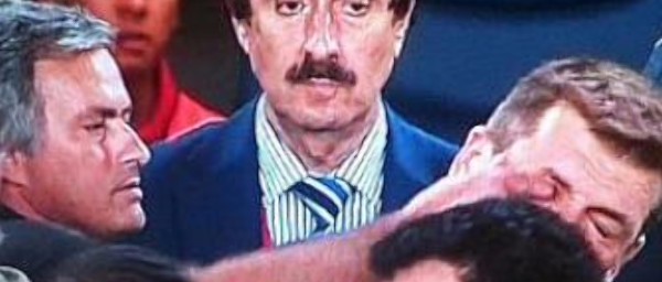En los últimos minutos del encuentro, que acabó con victoria del Barça por 3-2, Mourinho agredió a Vilanova metiéndole en el dedo en el ojo, a lo que este respondió propinándole una colleja.