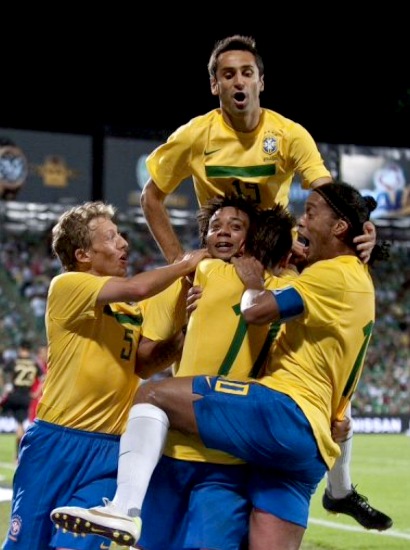 Brasil, 2: Jefferson; Dani Alves, David Luiz, Thiago Silva, Lucas Leiva; Lucas Moura (Adriano, m.46); Marcelo (Jonas, m.81), Fernandinho, Ronaldinho; Neymar (Elías, m.88) y Hulk