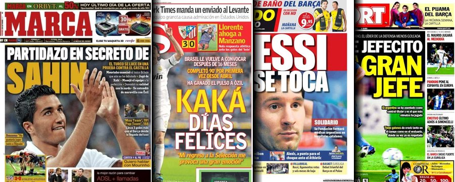 Portadas de las cuatro grandes cabeceras de la prensa deportiva española.