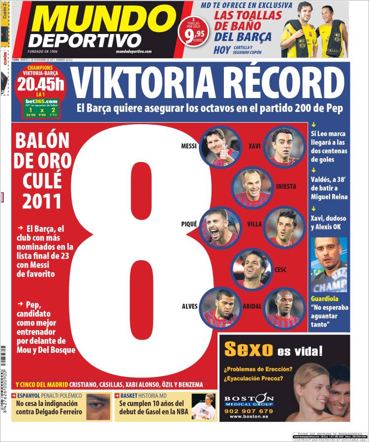 Resumen de la prensa deportiva del 1 de noviembre de 2011.