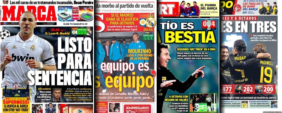 Portadas de las cuatro grandes cabeceras de la prensa deportiva española.