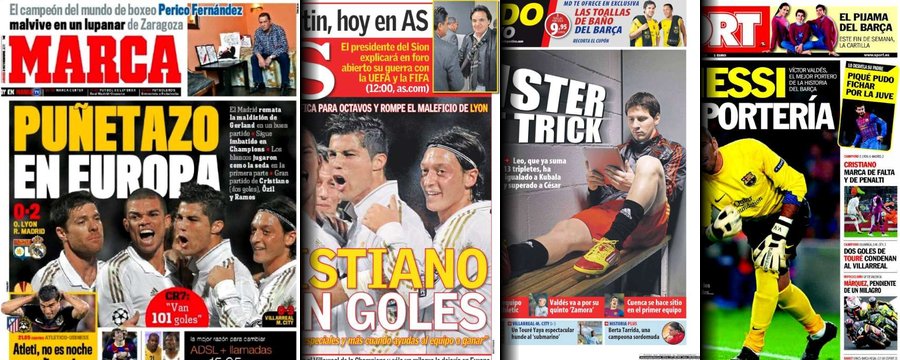 Portadas de las cuatro grandes cabeceras de la prensa deportiva española.