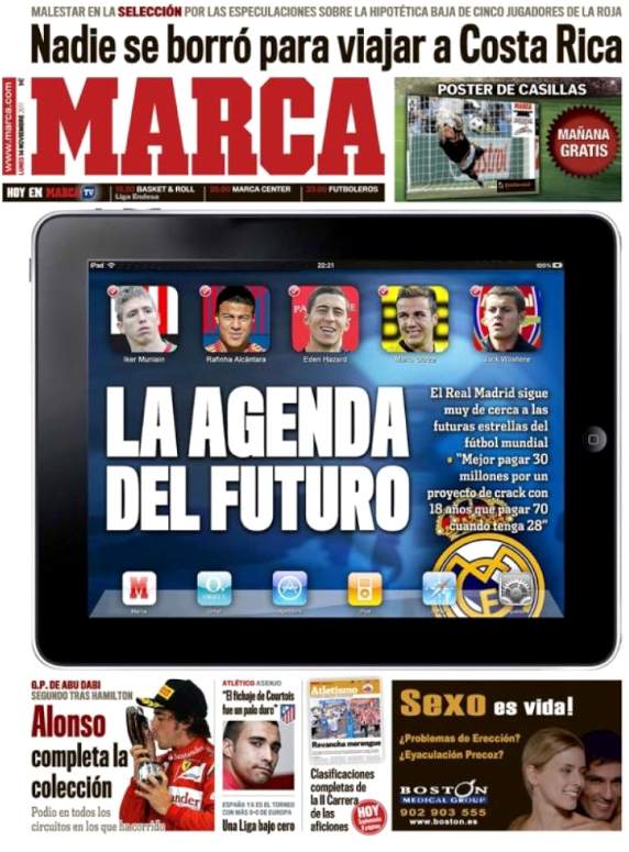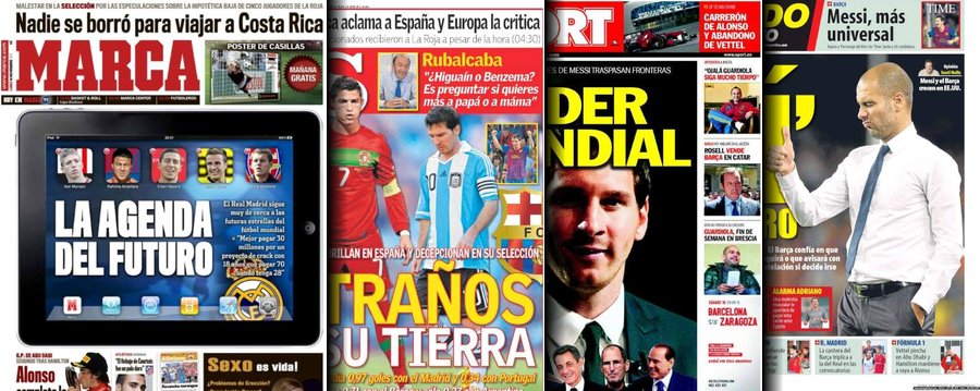 Portadas de las cuatro grandes cabeceras de la prensa deportiva española.