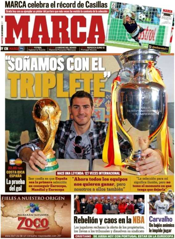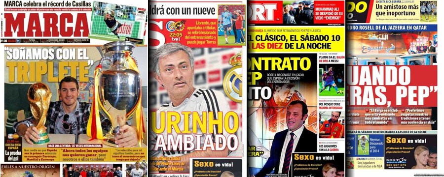 Portadas de las cuatro grandes cabeceras de la prensa deportiva española.