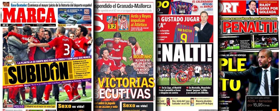 Portadas de las cuatro grandes cabeceras de la prensa deportiva española.