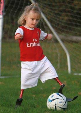 Ellie Challis tiene siete años, se declara admiradora del Arsenal, y juega a fútbol en el equipo del colegio. Hasta ahí, todo normal. Pero la historia cambia cuando vemos a la niña: sin piernas ni brazos, practica el deporte que ama con unas prótesis especiales, similares a las usadas por el atleta sudafricano Oscar Pistorius.