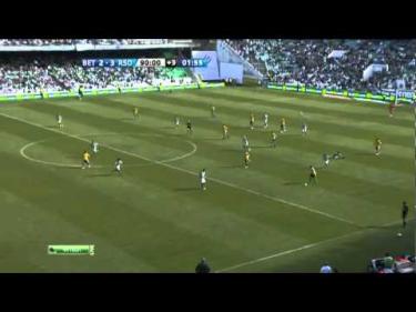 El central Íñigo Martínez, con un golazo desde su campo en el tiempo de descuento, ha dado la victoria (2-3) a la Real Sociedad en el Benito Villamarín ante un Betis cuyo técnico, Pepe Mel, queda en la cuerda floja.