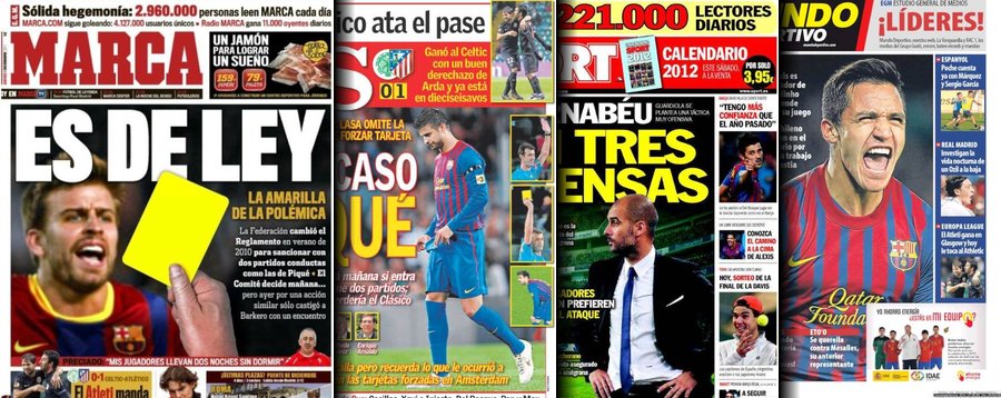 Portadas de las cuatro principales cabeceras de la prensa deportiva española.