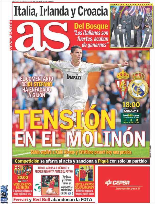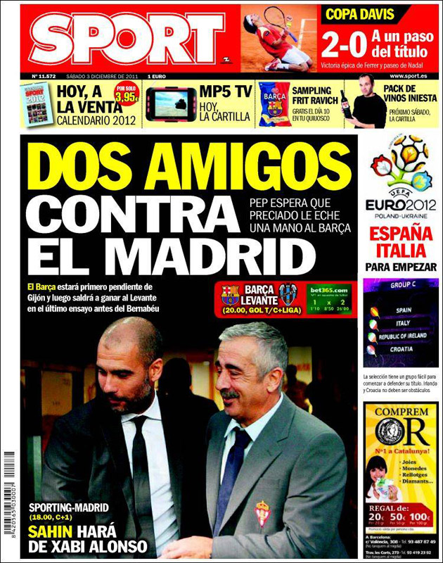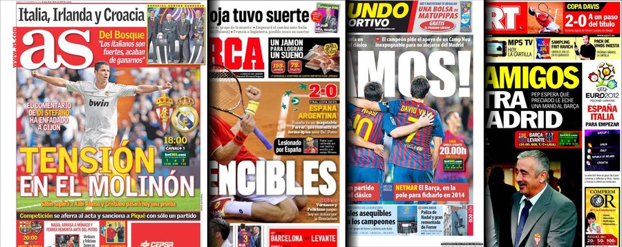Portadas de las cuatro principales cabeceras de la prensa deportiva española.