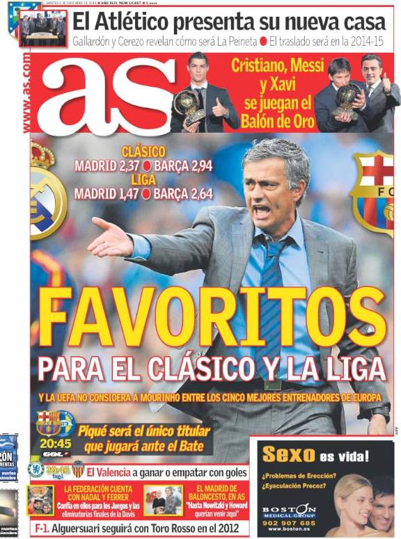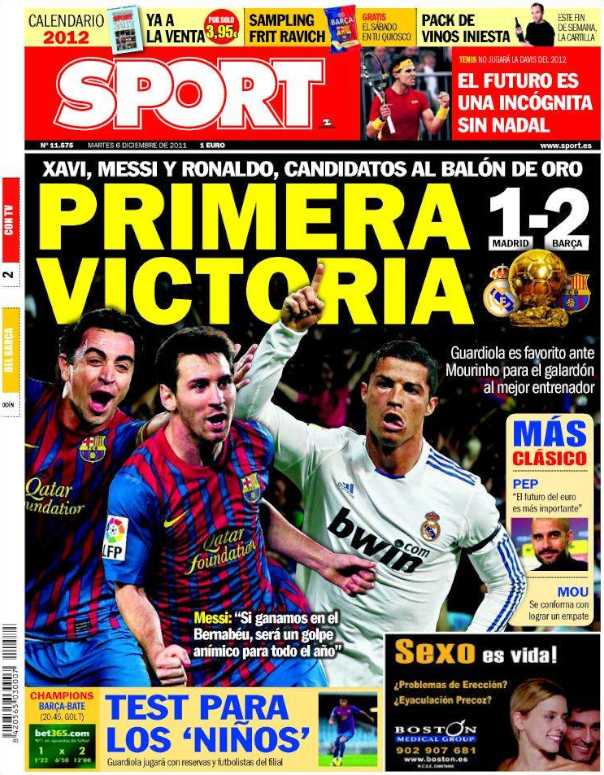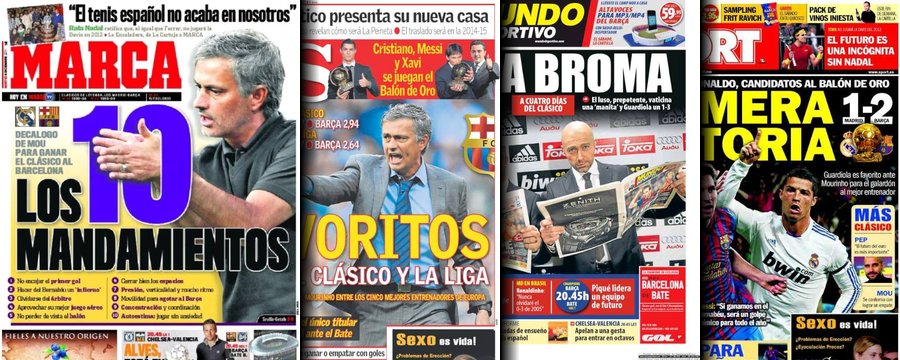 Portadas de las cuatro principales cabeceras de la prensa deportiva española.