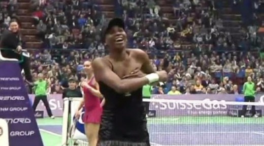 A Venus casi le ocurre lo mismo, pero de una forma inintencionada. La tenista californiana estaba jugando un partido de exhibición en Milán junto a la italiana Flavia Penetta. En un momento del encuentro, el tirante izquierdo de su vestido, de la marca Eleven, diseñado por ella misma, cedió.