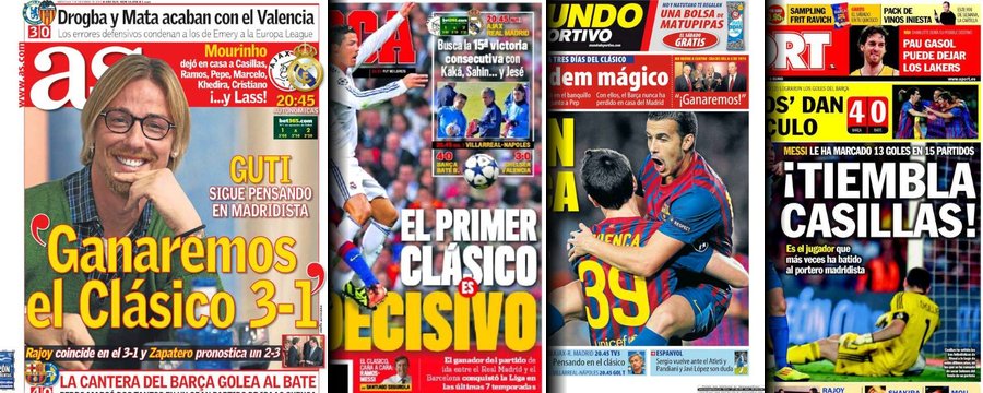 Portadas de las cuatro principales cabeceras de la prensa deportiva española.