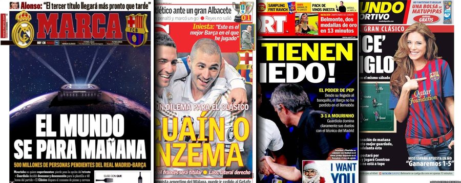 Portadas de las cuatro principales cabeceras de la prensa deportiva española.