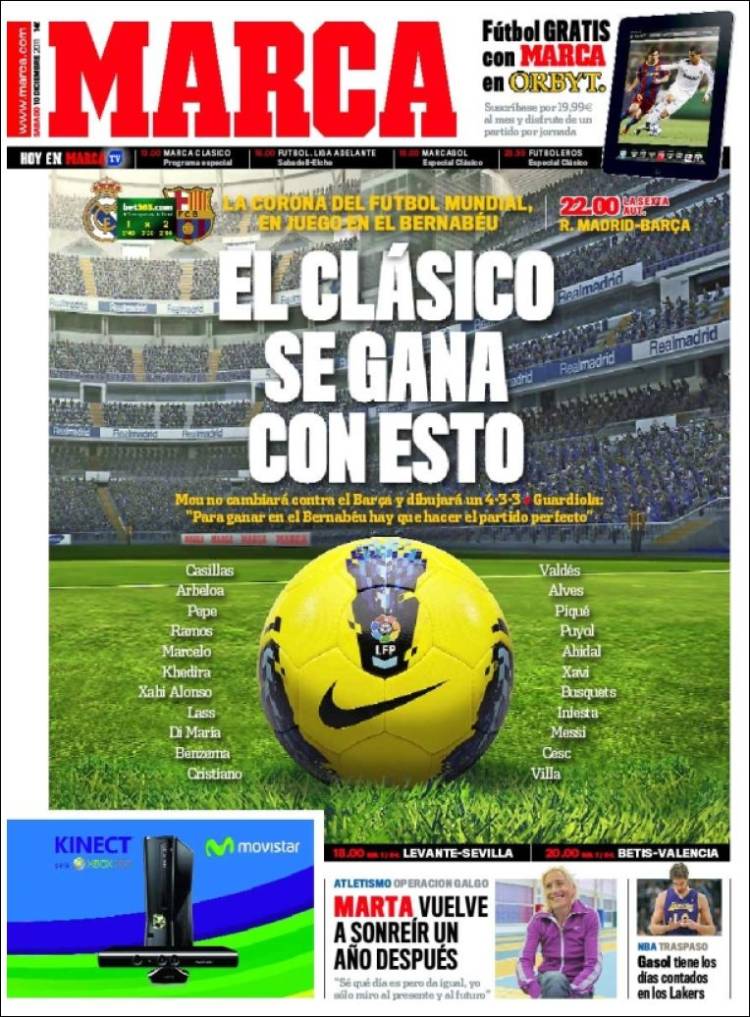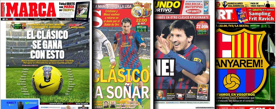 Portadas de las cuatro principales cabeceras de la prensa deportiva española.