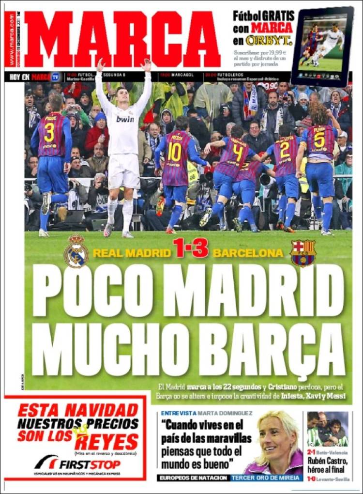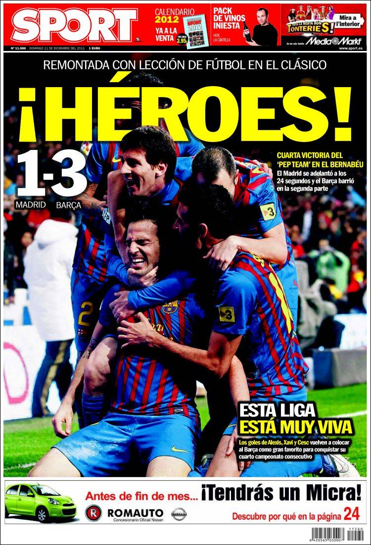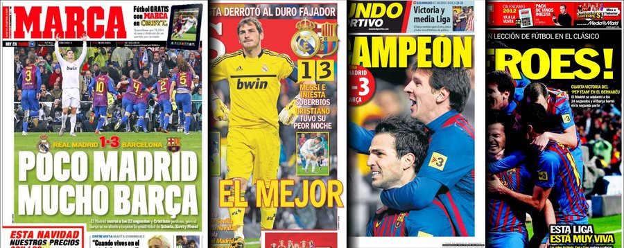 Portadas de las cuatro principales cabeceras de la prensa deportiva española.
