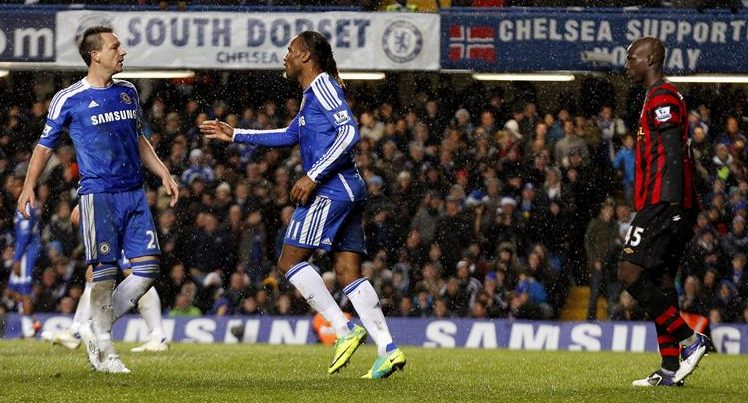 En ese escenario, el partido parecía cómodo para los visitantes, que no corrían riesgos y ralentizaban el juego ante un Chelsea que solo cobraba vida en algunas apariciones puntuales de Drogba, que utilizaba su fuerza física para superar a los defensas de Mancini, aunque no llegaba a inquietar al guardameta Joe Hart.